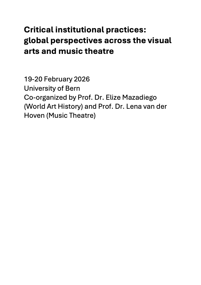 A key focus of this workshop is on methods and production processes that open up new configurations of knowledge: experimentation in artistic form and curatorial practice, collective authorship, self-organized structures that bypass traditional institutional gatekeeping and the creation of transnational networks of solidarity. These approaches are considered not merely as oppositional gestures, but as constructive tools for building alternative cultural infrastructures. The relevance of this inquiry lies in its potential to inform institutional transformation and cultural discourse, particularly a young generation of students at the University of Bern who will work in these arenas. In a time of disintegrating global interconnectedness and diversity measures, understanding how institutions can be critically engaged, reimagined, and reinvented is of urgent significance—not only for the sustainability of the arts but for the cultivation of more equitable and inclusive forms of public life.